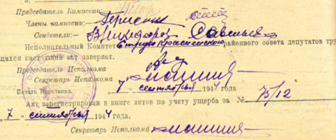 Из акта об убытках от немецко-фашистских захватчиков колхоза «Памяти Кирова» Павского с/с Струго-Красненского района за 21 мая 1944 года