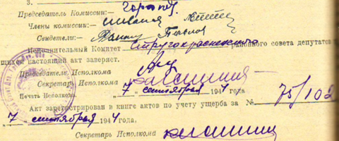 Из акта об убытках от немецко-фашистских захватчиков колхоза «Бородкино» Всинского с/с Струго-Красненского района за 17 мая 1944 года