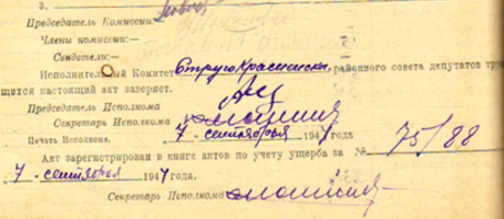 Из акта об убытках от немецко-фашистских захватчиков колхоза «Букино» Логовещенского с/с Струго-Красненского района за 26 мая 1944 года