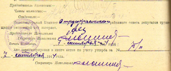 Из акта об убытках от немецко-фашистских захватчиков колхоза «Красное поле» Лудонского с/с Струго-Красненского района за 24 мая 1944 года