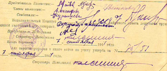 Из акта об убытках от немецко-фашистских захватчиков колхоза «Гаврилова гора» Симанологского с/с Струго-Красненского района за 21 мая 1944 года