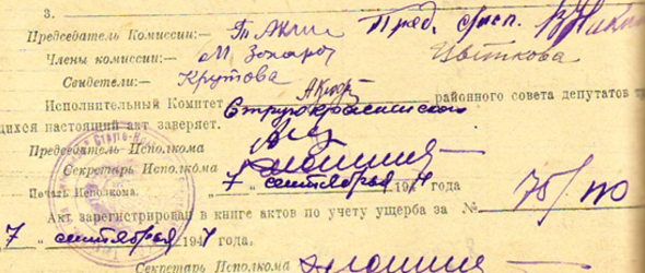 Из акта об убытках от немецко-фашистских захватчиков колхоза «Крестьянин» Яблоницкого с/с Струго-Красненского района за 30 мая 1944 года