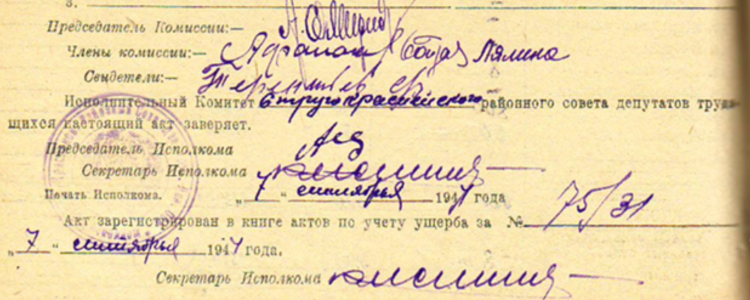 Из акта об убытках от немецко-фашистских захватчиков колхоза «Передовик» Лудонского с/с Струго-Красненского района за 25 мая 1944 года