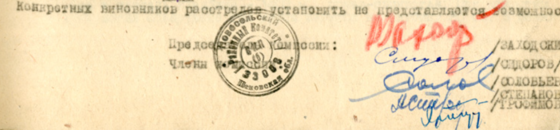 Колхозники деревни "Нестероничи" – Фёдоров Д. Ф., Бойцова А. Алексеева Л. А. в составленном акте подтверждают факт расстрела немецком карательным отрядом их односельчан - Никифорова С. Н. 40 лет и Миронова Н. М.