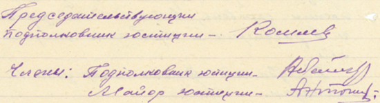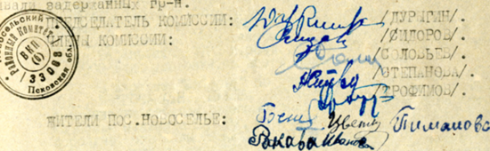 13 декабря 1945 года мы, нижеподписавшиеся Районная комиссия по установлению и расследованию злодеяний причиненных немецко-фашистскими оккупантами Новосельского района, Псковской области в составе: Председателя комиссии: ДУРЫГИНА, членов СИДОРОВА, СОЛОВЬЕВА, СТЕПАНОВОЙ и ТРОФИМОВА и жителя пос. Новоселье, Новосельского района, Псковской области составили настоящий акт о нижеследующем: