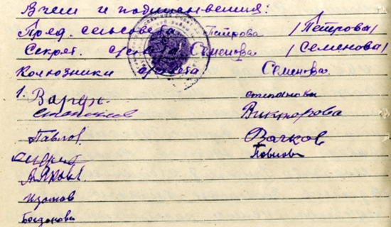 Немецко-фашистские захватчики по приказу майора Шиплера в 1941 году прибыли в нашу деревню и забрали скота: 2 быка производителя, коров 59, теля 18, овец 43, лошадей 7.