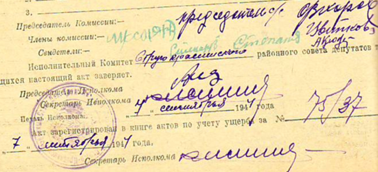 Из акта об убытках от немецко-фашистских захватчиков колхоза «Им. Будённого» Дубницкого с/с Струго-Красненского района за 18 мая 1944 года