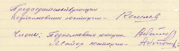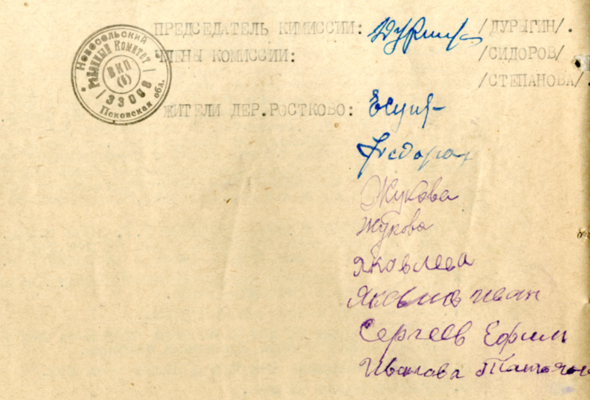 В результате злодеяний немецкого-карательного отряда заживо сожжены следующие гр-не дер. Ростково, Новосельского района, а именно: