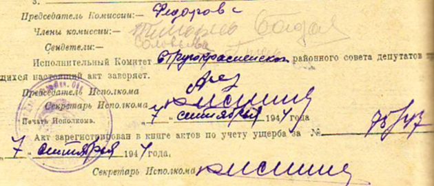 Из акта об убытках от немецко-фашистских захватчиков колхоза «Ответ интервентам» Хрединского с/с Струго-Красненского района за 20 мая 1944 года