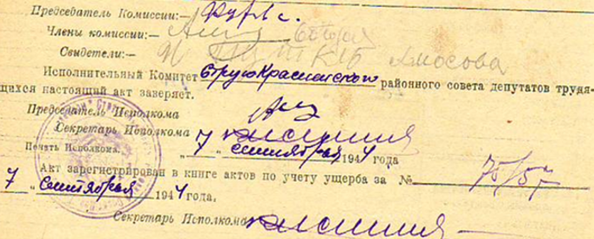 Из акта об убытках от немецко-фашистских захватчиков колхоза «Верный путь» Хрединского с/с Струго-Красненского района за 18 мая 1944 года