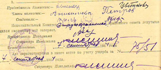 Из акта об убытках от немецко-фашистских захватчиков колхоза «Красное Замошье» Рожницкого с/с Струго-Красненского района за 29 мая 1944 года